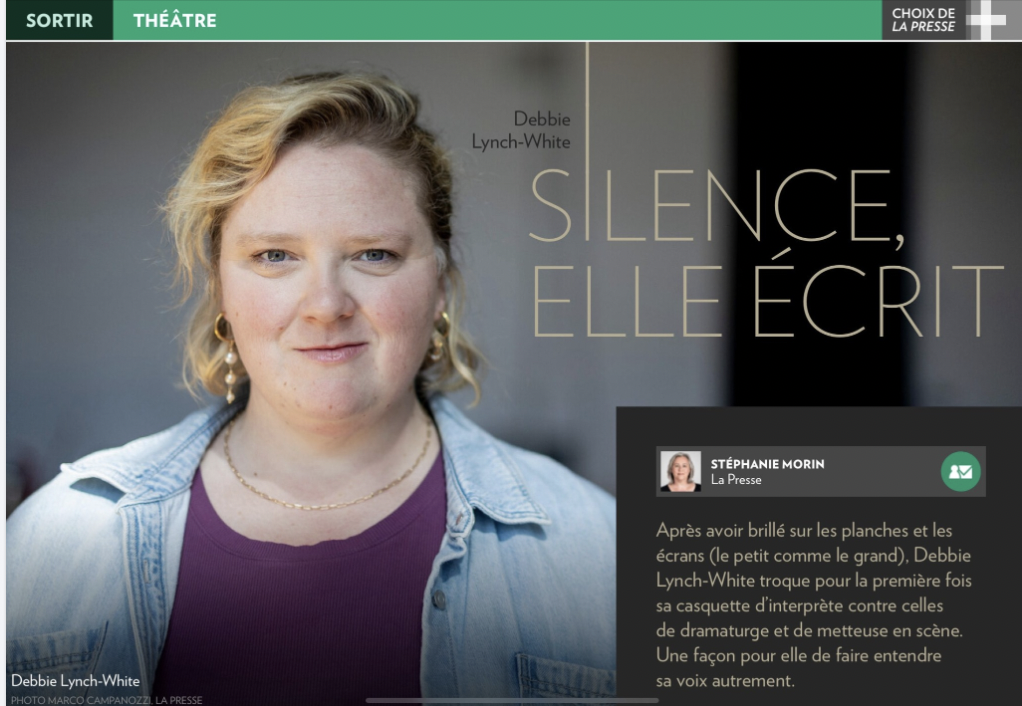À la Licorne on peut voir « L’usure de nos aurores ».Un texte et une mise en scène de DEBBIE LYNCH-WHITE (2010).Du 7 octobre au 15 novembre 2025 .Voici une entrevue qu’elle a accordé à La Presse.https://tr.ee/hwyyodkMtX